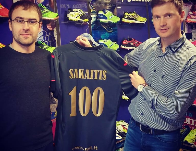 Simas Sakaitis - pirmasis žaidėjas pasiekęs šią istorinę ribą. Jam prireikė 3 sezonų ir 100 - ąjį įvartį jis pelnė paskutinėse sezono rungtynėse.